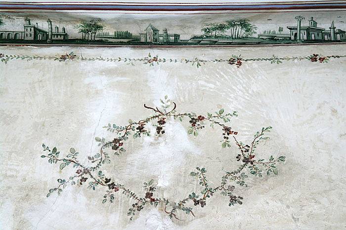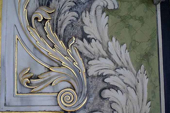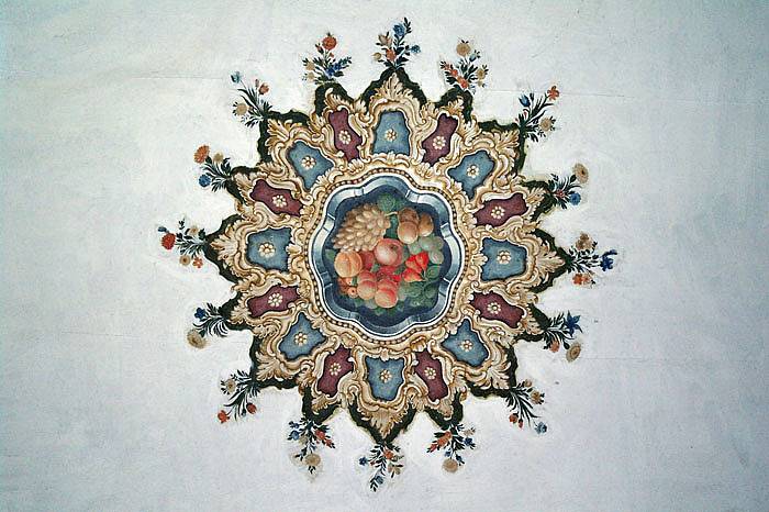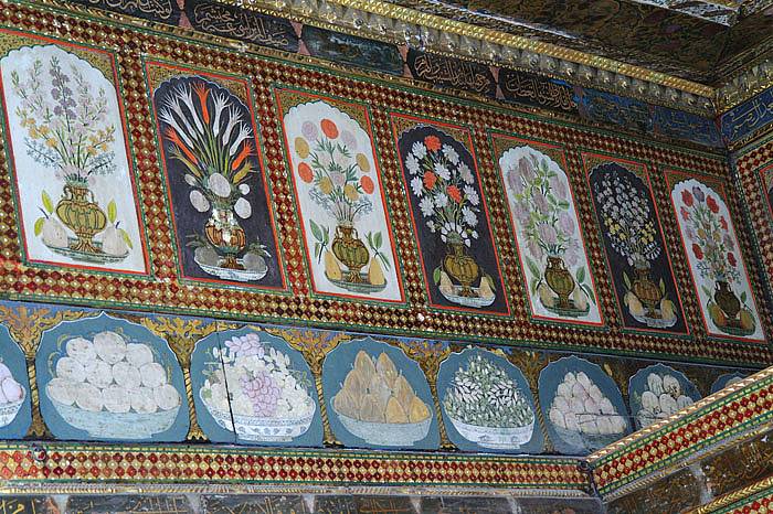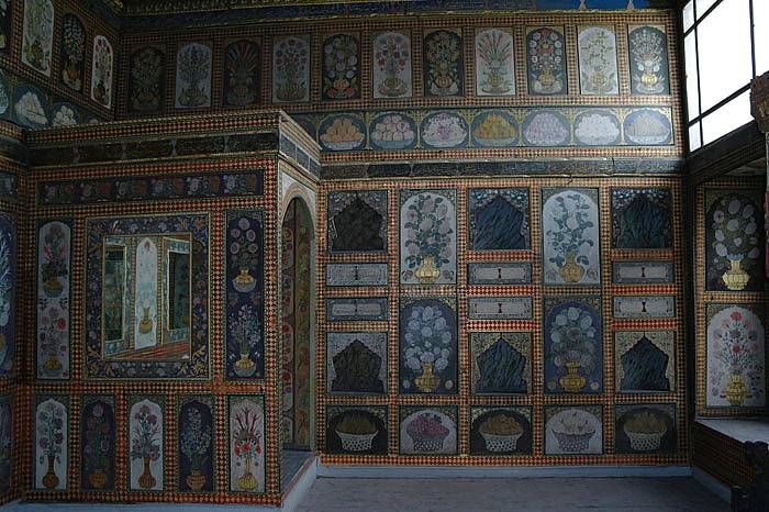 Duvarların tamamını kaplayan ahşap panolar Çiçek ve meyve resimleri ile doluydu. Bu odada Çini yerine ahşap üzerine süsleme sanatı görülmektedir.