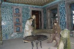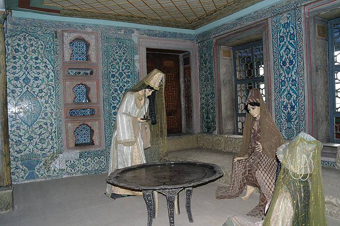 Duvarlar Çinilerle bezenmiş mavi yeşil rengin hâkim olduğu Çiniler bütün ihtişamıyla kendini göstermektedir. Daha sonra cariyeler ve kadın efendiler taşlığına geldiğimizde açık bir avlunun üç tarafı revaklarla Çevrili avlunun etrafında haseki daireleri, cariye odaları ve taşlığın solunda yer alan hamam bulunmaktadır.